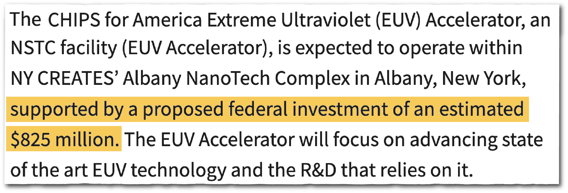 The year after the CHIPS Act passed Congress, Albany cobbled together $10 billion for Albany Nanotech, including $1 billion from the state vault and $9 billion from the private sector. Washington committed an additional $825 million last October.