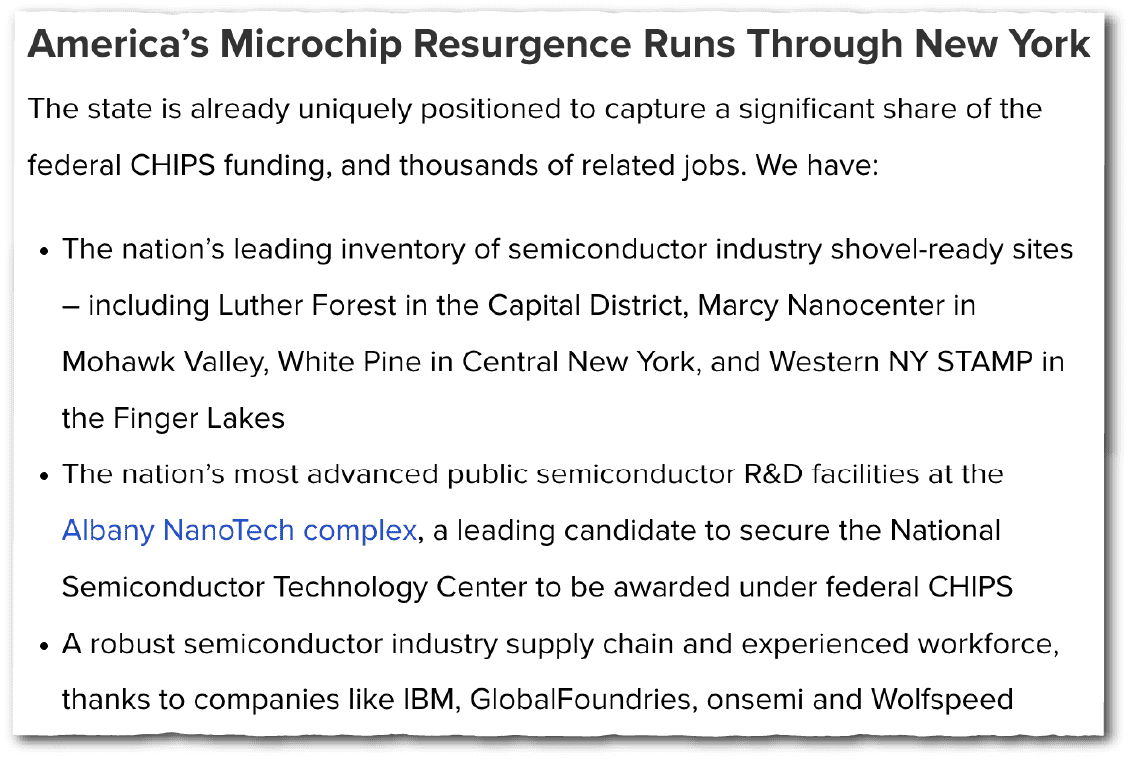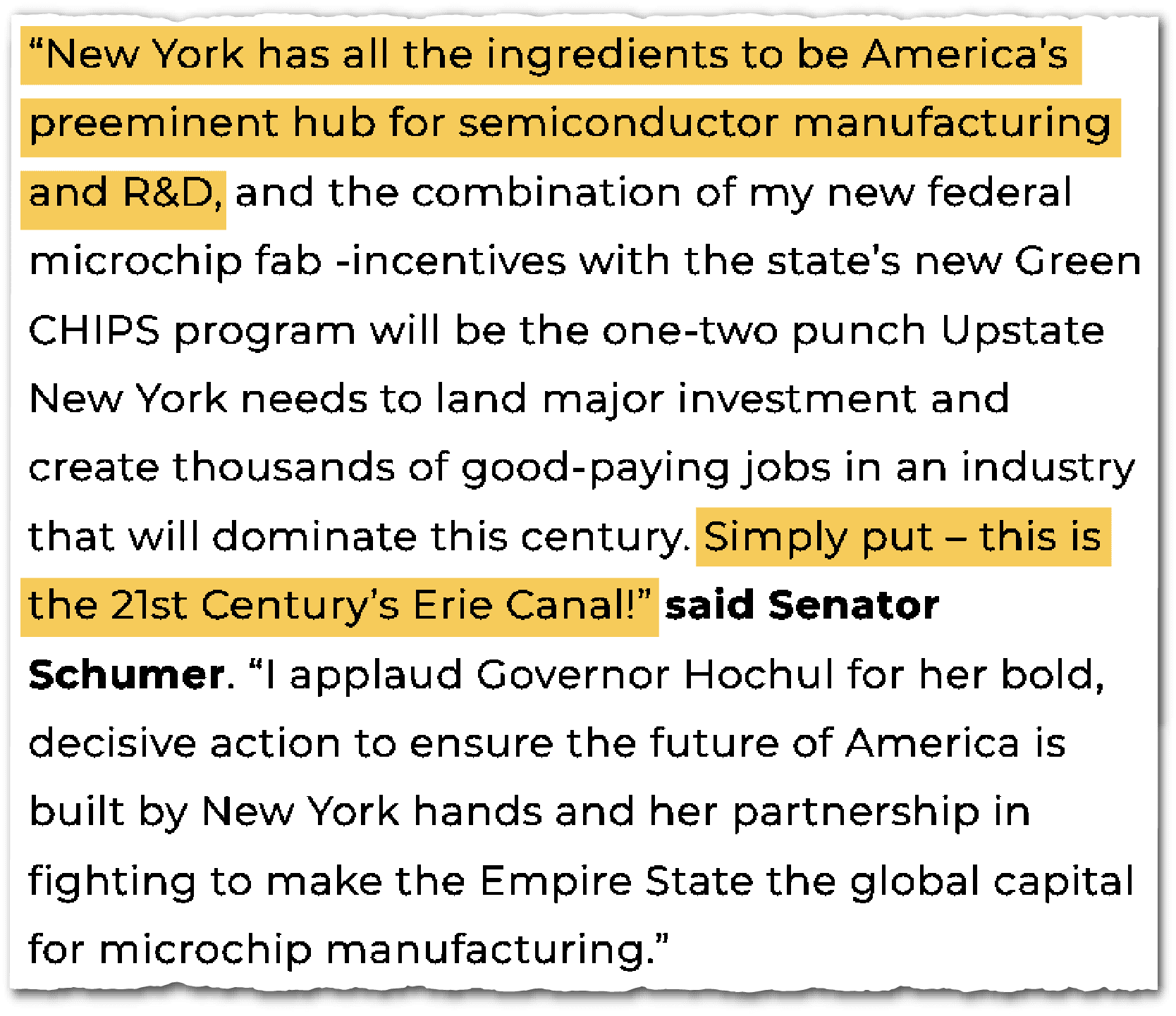 Just two days later, Governor Hochul signed her own “Green CHIPS” bill, a state complement to the federal legislation. The measure unlocks up to $10 billion in additional local incentives for semiconductor firms that set up in New York. To date, no other state has matched the breadth of New York’s investment.