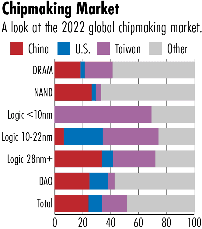As of 2021, almost 93 percent of global DRAM capacity was in South Korea, China, and Taiwan, according to a report by Georgetown University’s Center for Security and Emerging Technology. Micron’s advanced DRAM production is based in Japan and Taiwan, though the goal of its New York investment is to bring the amount of U.S.-made DRAM to 40 percent of its global output.