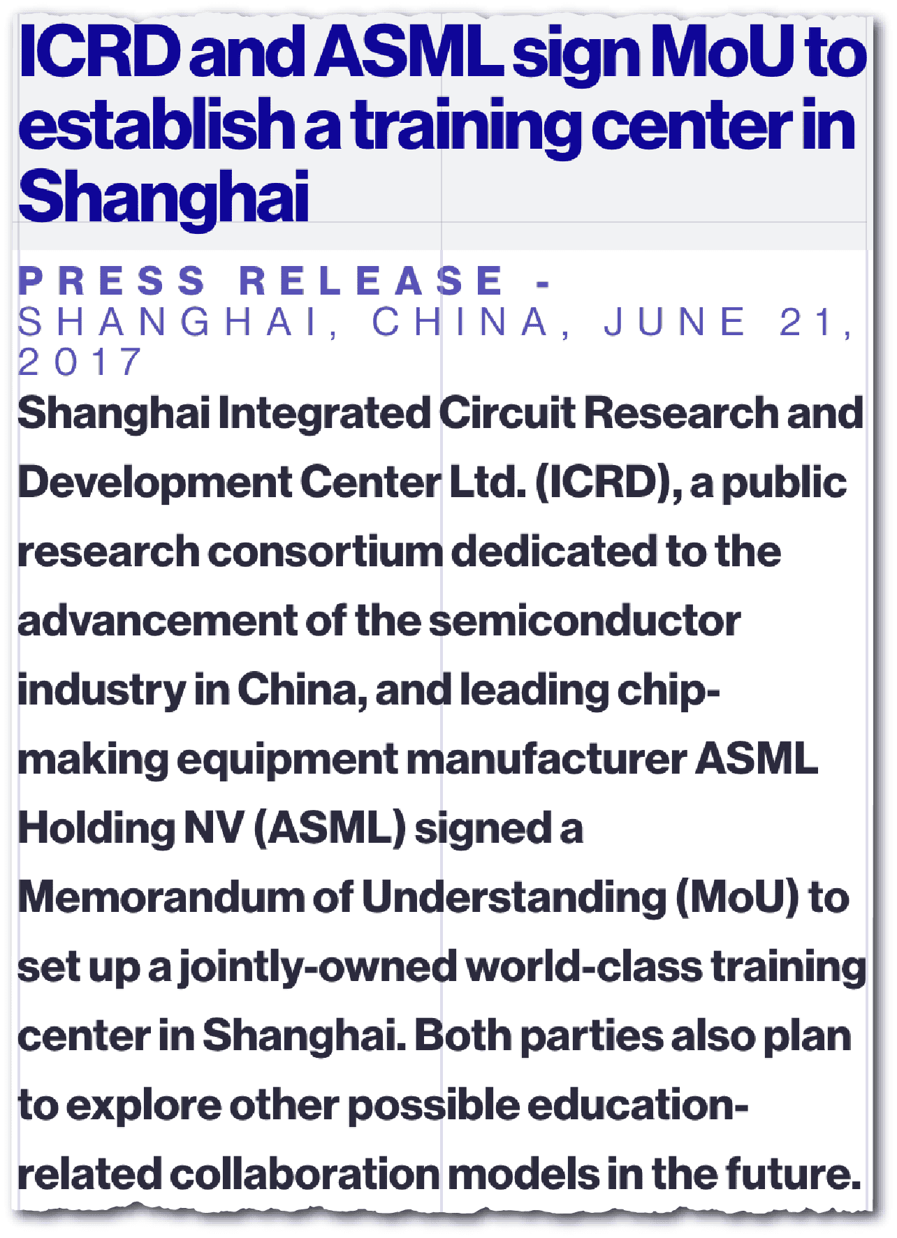 The R&D complex has collaborated with major semiconductor companies, from both the West and China. In 2017, it signed a deal with ASML to set up a jointly-owned lithography training center, echoing the early arrangement the Dutch firm made with Albany Nanotech and IMEC.