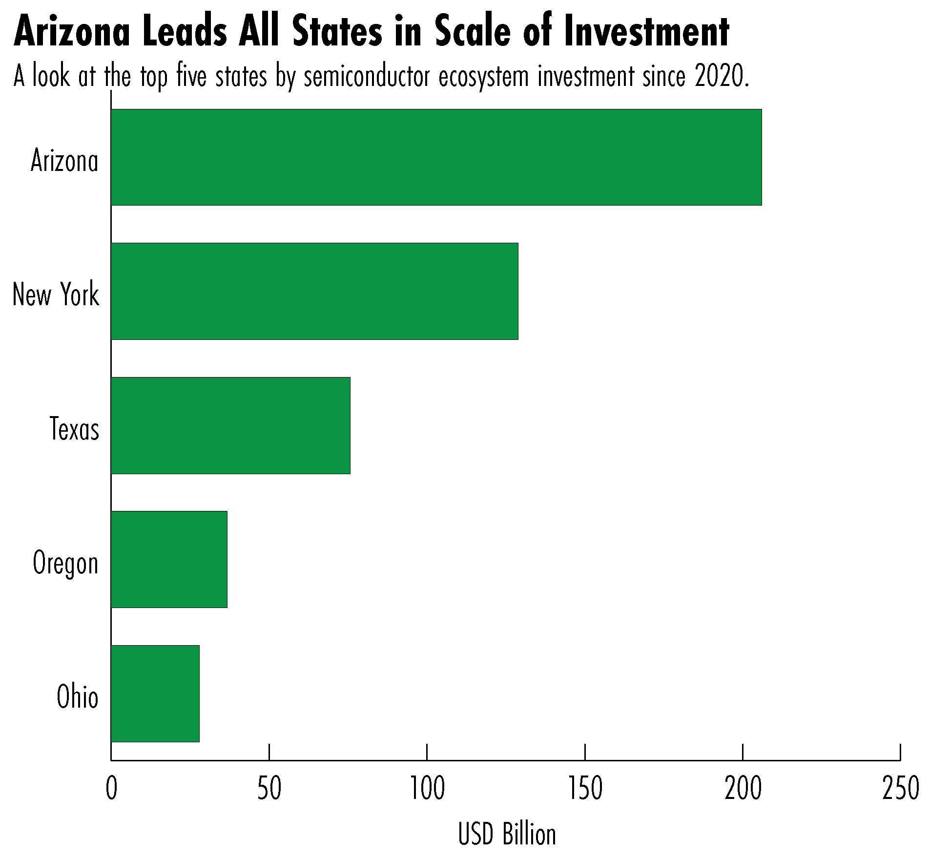 To achieve this, New York is competing for fabs against states including Arizona, California and Oregon. TSMC has pledged $165 billion toward building fabs, packaging facilities and an R&D center outside of Phoenix.