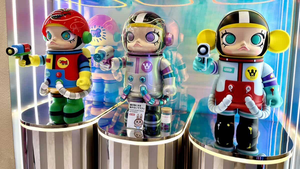 ‘Mega Space Molly’ dolls on display in California (left) and Japan (right).Credit: Pop Mart, Depositphotos