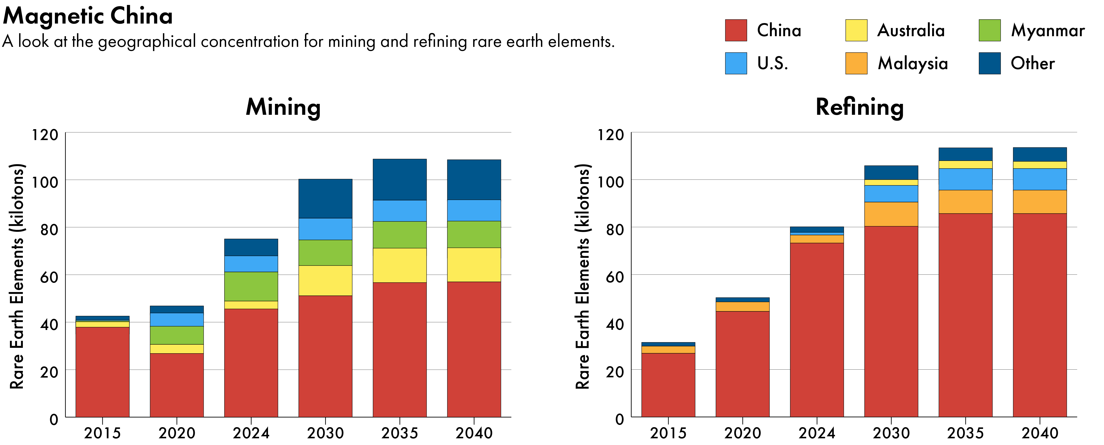 Nonetheless, some see ways for the U.S. and others to make up more ground. “Chokepoints are never absolute,” says Princeton’s Chan. “Sacrifices to performance and cost efficiency in permanent magnets could be made to reduce dependencies on China.