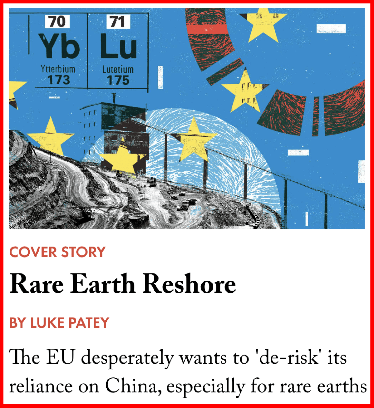 “It is human nature but after a crisis, you must not be tempted to go back to normal,” he adds. “In addition to diversifying our mining and processing sources, we need joint efforts to scale and develop new technologies that do not require rare earths in large amounts. There must be a collective approach to economic security.”