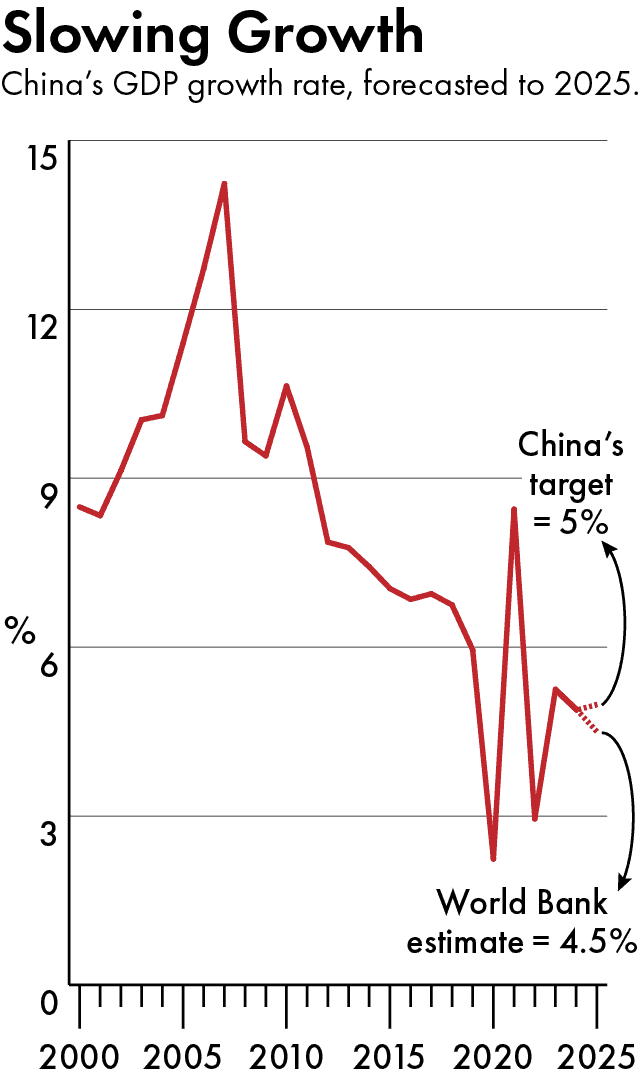 For the past few years, China says it has hit its short-term GDP growth targets of around 5 percent. But long gone are the days of China’s world-beating double-digit growth. Today, the economy is marooned in a deflationary spiral, with stagnant incomes, low consumer spending and high unemployment, particularly among college graduates. The party, meanwhile, seems to be leaning into deflationary policies, such as government subsidies for unproductive industries, which economists believe will prolong these problems.