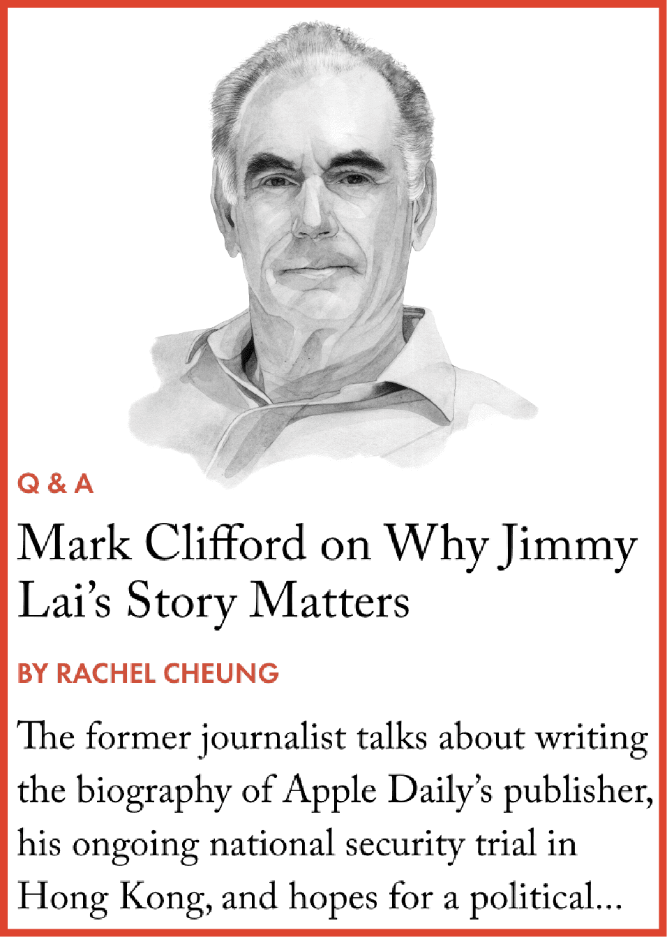 Lai, publisher of the now defunct Apple Daily, is the most prominent of the ten journalists currently imprisoned on charges related to the NSL. A leading figure in the pro-democracy protests, the 77-year-old was convicted of fraud and has been held mostly in solitary confinement since December 2020. His assets have been seized and he faces further prosecution even while in prison.