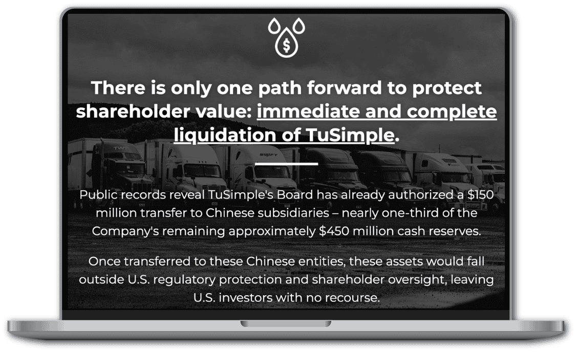 Hou is suing his former colleagues for control of TuSimple’s $450 million cash reserve. If successful, he plans to liquidate the company and redistribute it to shareholders.