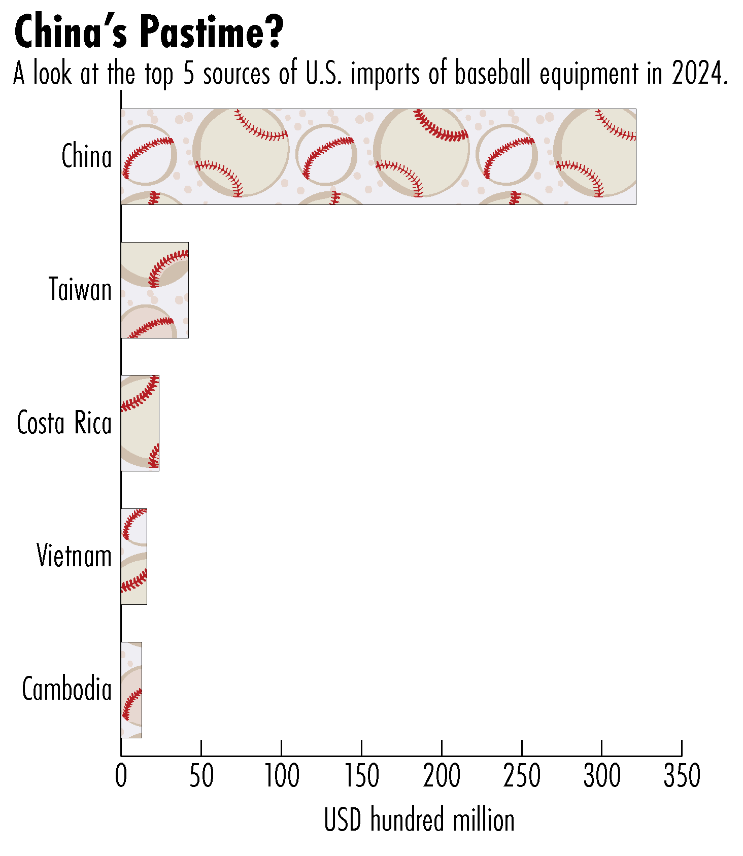 The average minor league baseball game uses between 60-70 baseballs. Some use more than 100, and each ends up in a different part of the stands. But they all came from the same place: China.