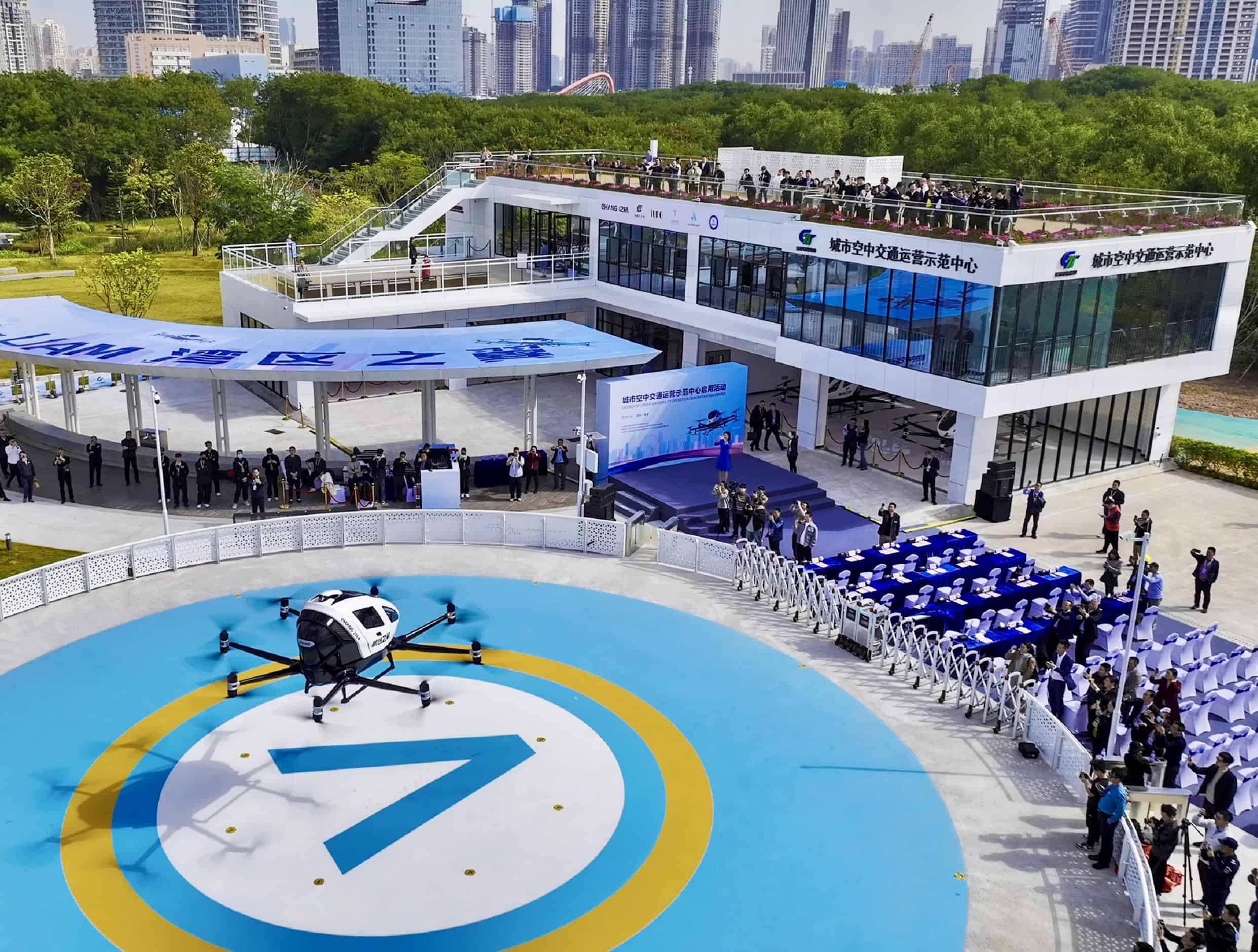 A demonstration of EHang’s EH216-S vehicle in Hangzhou, at the 2024 Smart Transport Expo. Credit: EHang