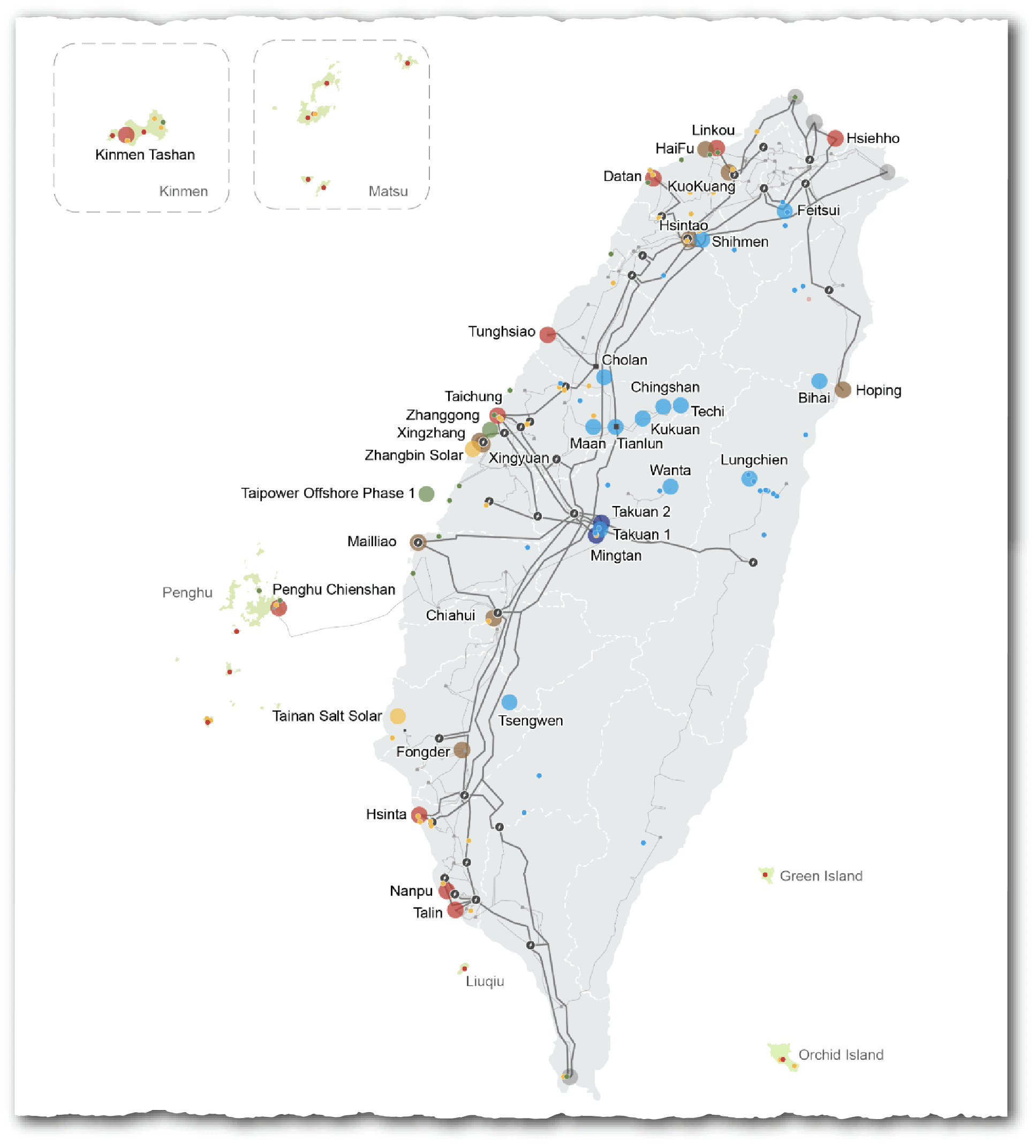 Taiwan’s tricky geography further complicates matters. The bulk of its industry and population is in the north but power generation, especially for solar, is concentrated in the south. That makes the grid very vulnerable to an attack on major south-north transmission lines or other grid hardware.
