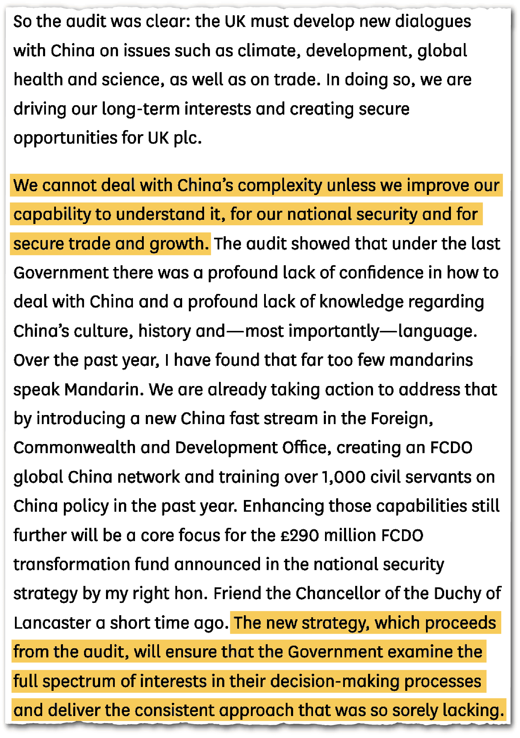 The logic of stating China is an enemy state would mean cutting Britain off from economic opportunities that matter to our prosperity, and being involved in critically important engagements with new Chinese research and development on health, climate and the environment…