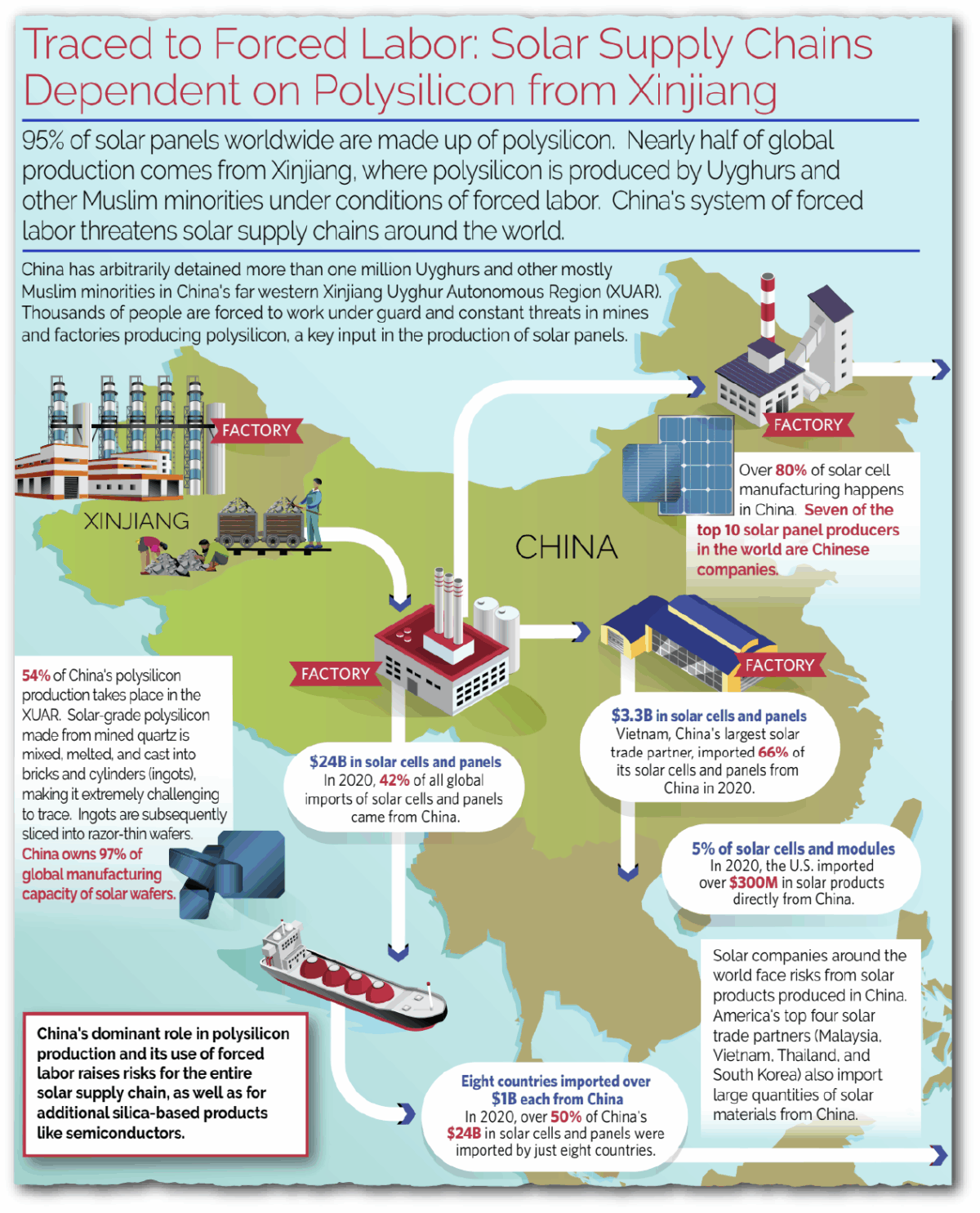 And secondly, since 2021, when we released our report, the world has been producing more solar modules than even the most optimistic projections had predicted back then. People thought banning the use of Uyghur forced labor would shut down solar panel production. But in fact, companies have very rapidly pivoted to sites in other parts of China where they’re not using coal energy or forced labor, or outside of China altogether. Other countries have been able to enter the market where they couldn’t before because the price was through the floor. We’re seeing a ton of diversification of the supply chain and increase in innovation that is going to serve us well, and move us towards our climate goals much more quickly than we’d expected.