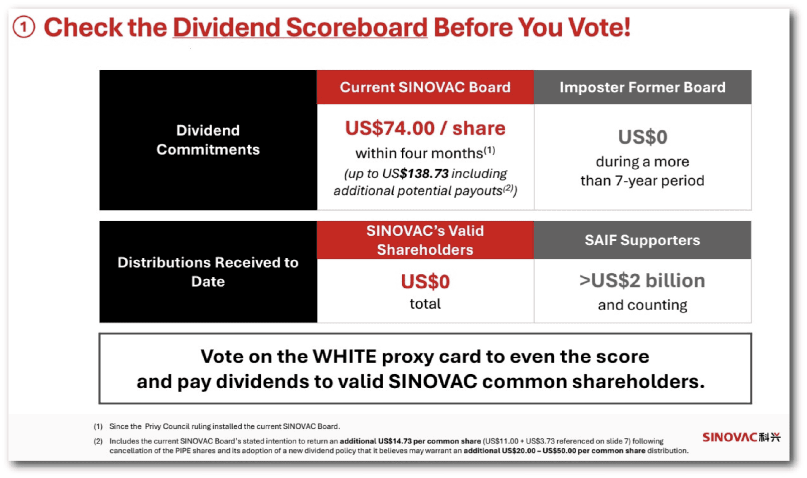 Shortly after taking over as chairman of the new board, Li announced a new dividend that would pay out $55 per share to Sinovac shareholders. This amounted to a payout of nearly $4 billion and was distributed in July to all shareholders except Vivo and Advantech, whose $649 million portion is being held in escrow pending the decision on the validity of the shares. The board chaired by Li argues this dividend was about “catching up” all the other Nasdaq investors, including Heng Ren, to the level of dividends already received by SLS’s shareholders.
