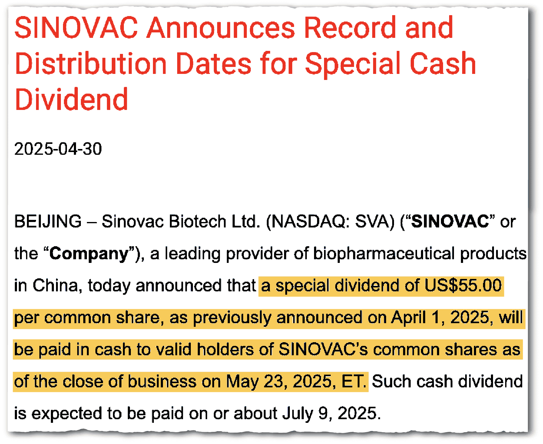 Moreover, Sinovac declared in its 2023 annual report that it had no “present plan to pay any cash dividends on [Sinovac’s] shares in the foreseeable future.” It added that it intended to “retain most, if not all, of our available funds and any future earnings to operate and expand our business.”