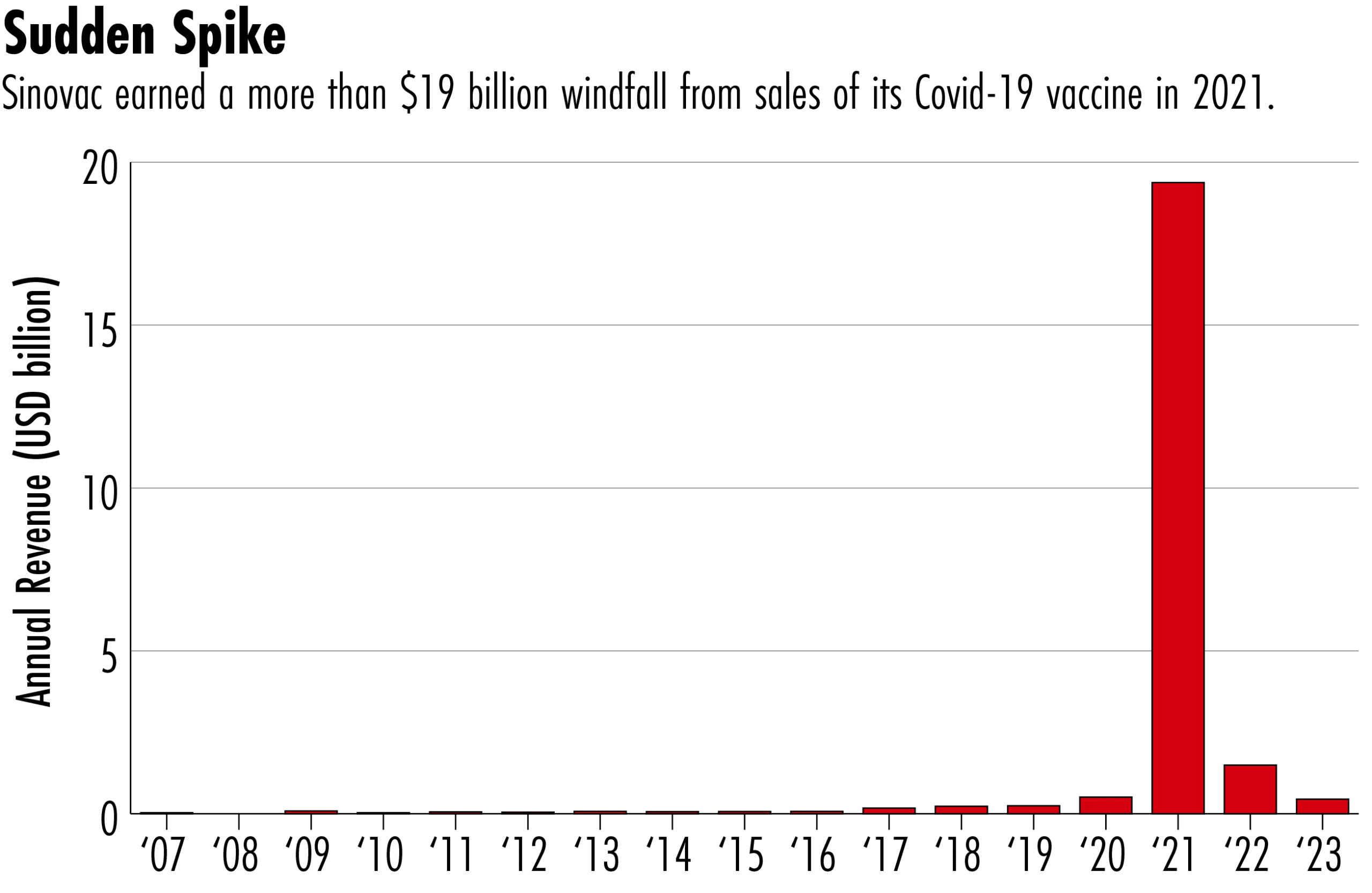 Sinovac announced in January 2024 that it ended production of its COVID-19 vaccine. Subsequent financial statements revealed that the firm has been developing a new rotavirus vaccine and has expanded into new markets such as Turkey and Brazil. But the company has revealed little else about its future or what it plans to with its pandemic profits.