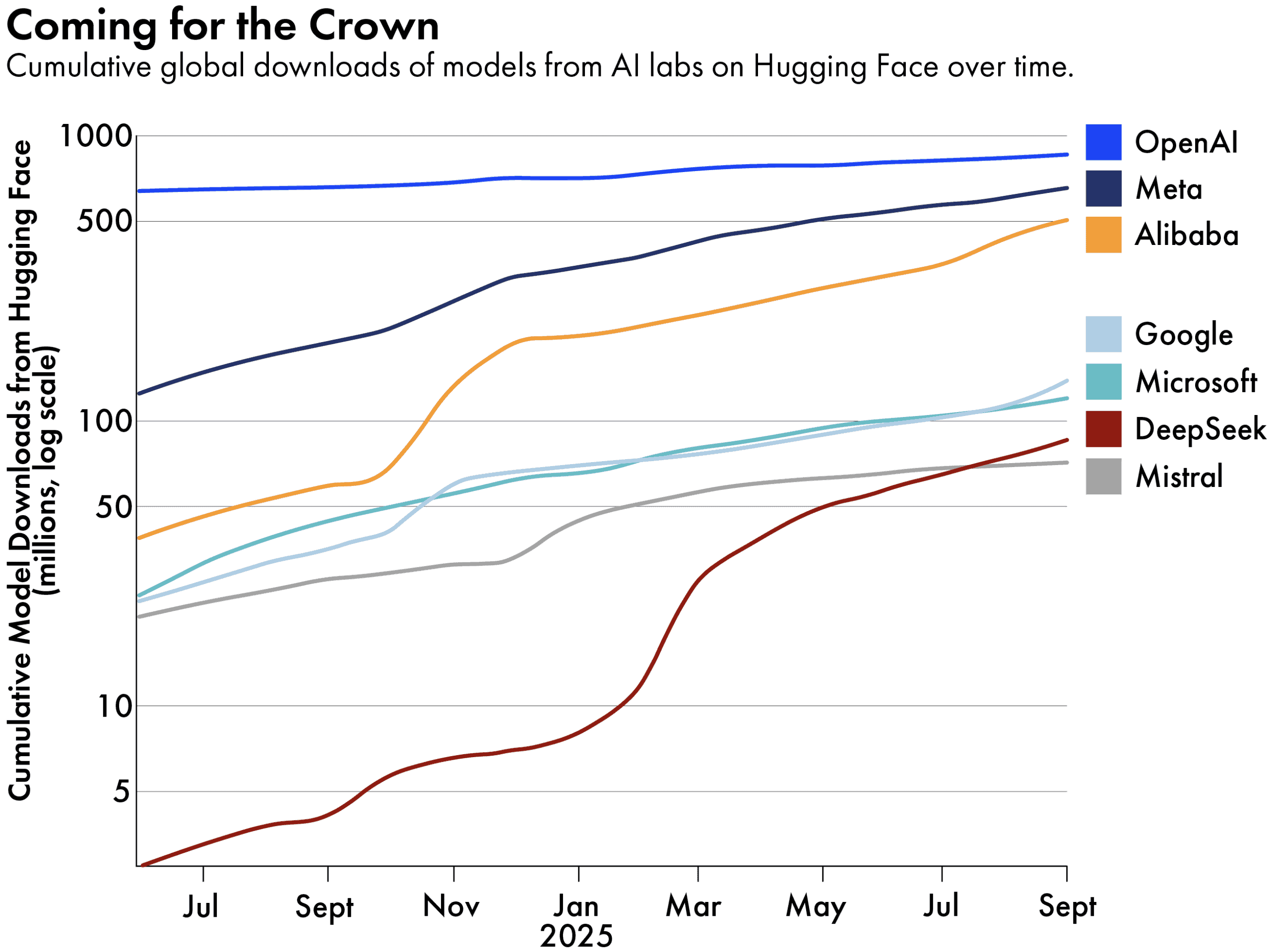 Alibaba itself now reckons there are over 170,000 models based on Qwen. The Chinese company leads globally in new derivative models uploaded to the U.S. developer forum Hugging Face every month, having overtaken Meta’s Llama since the start of this year.