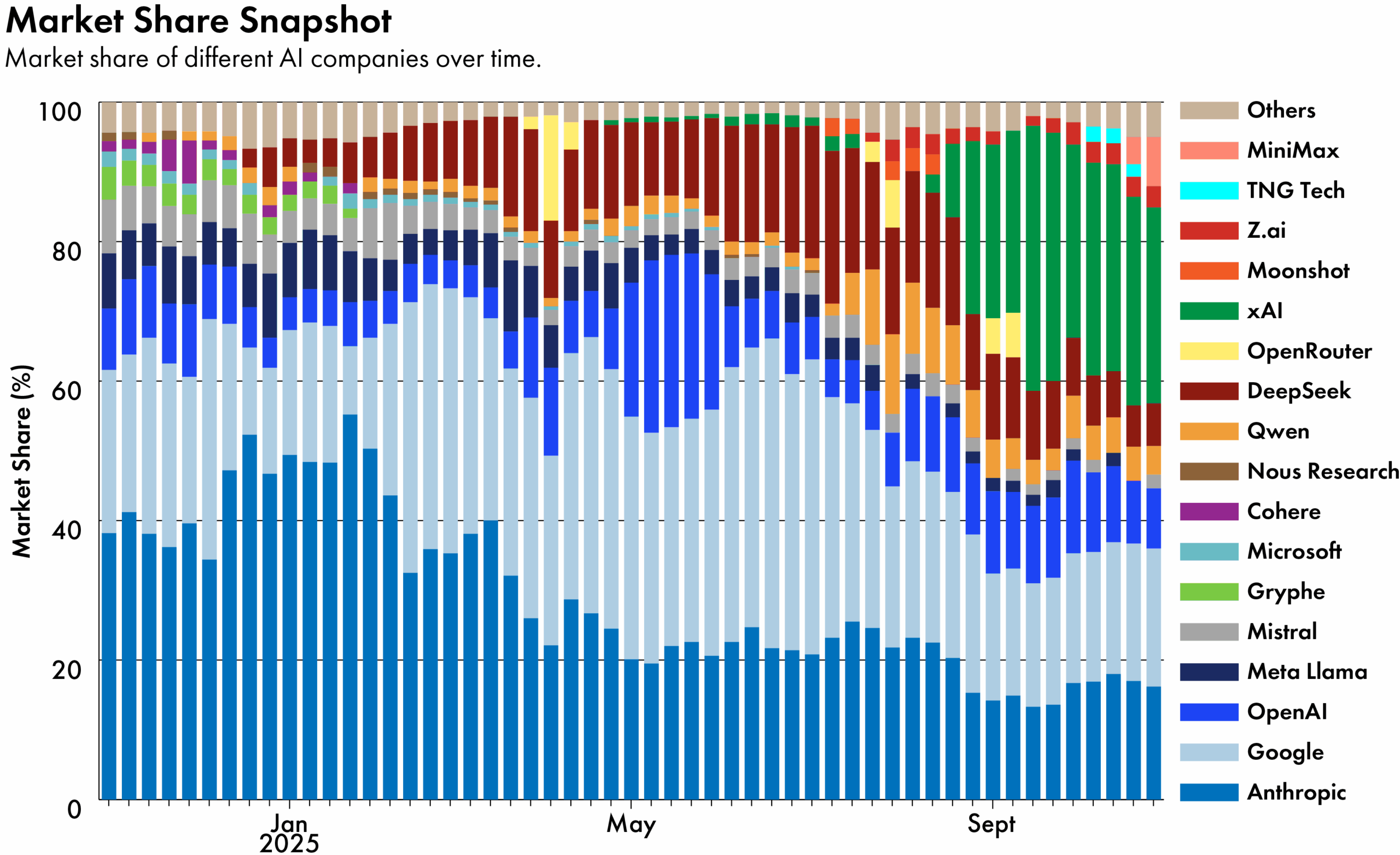 In the meantime, the likes of DeepSeek and Qwen have been trending on OpenRouter, a popular U.S. platform that directs developers to different AI models. They were both among the top ten most popular models on the platform last week, along with those from Z.ai and MiniMax, a Shanghai-based AI unicorn. This time last year, the chart was dominated by U.S. models.