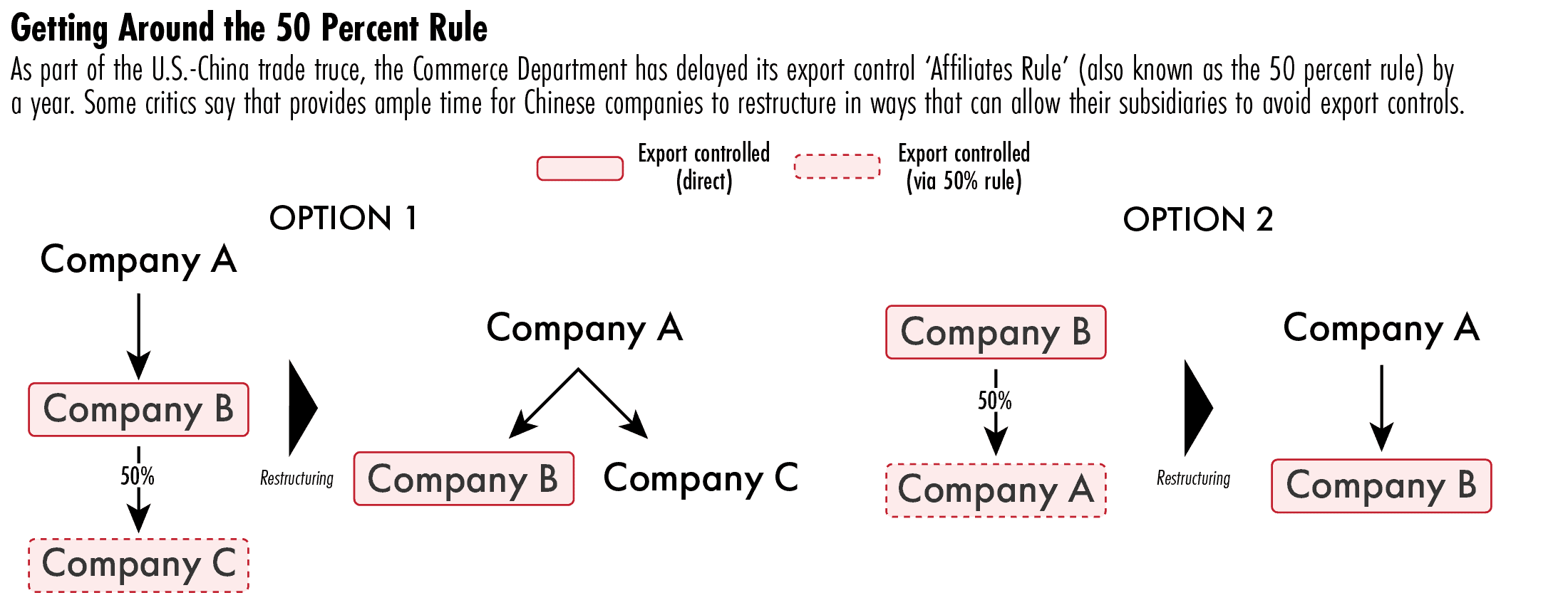 Ways that companies could restructure to get around the rules, he suggests, could include spinning an entity out of a company’s existing ownership structure, or adjusting its ownership to avoid the 50 percent rule when and if it is reintroduced.
