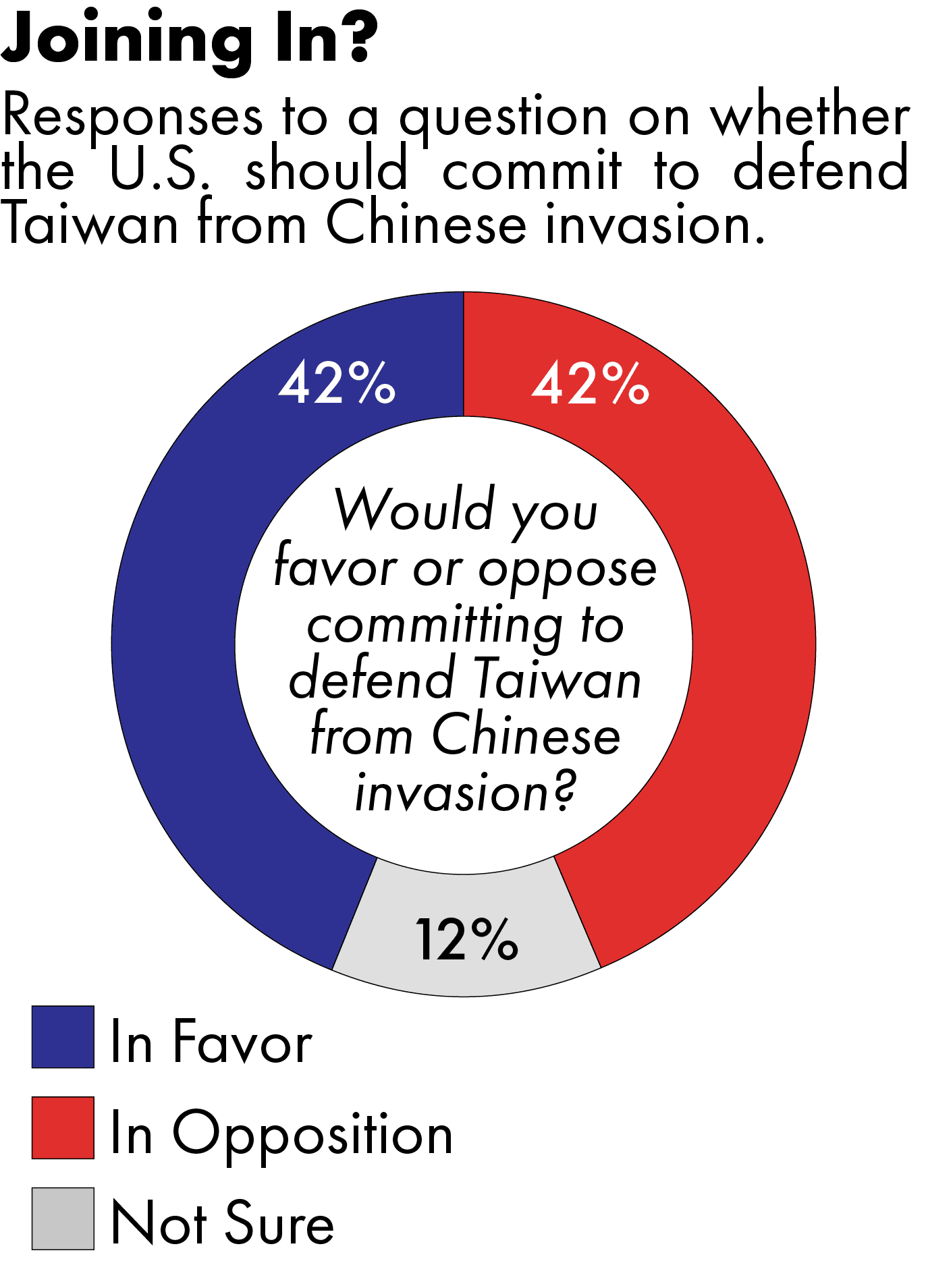 Support for Taiwan among the American public is another known unknown. Last year, in a survey of Americans by the Chicago Council on Global Affairs gauging respondents’ commitment to defending Taiwan from an invasion, most either opposed getting involved or were unsure. One 2022 poll found that only 34 percent of Americans could locate Taiwan on a map.