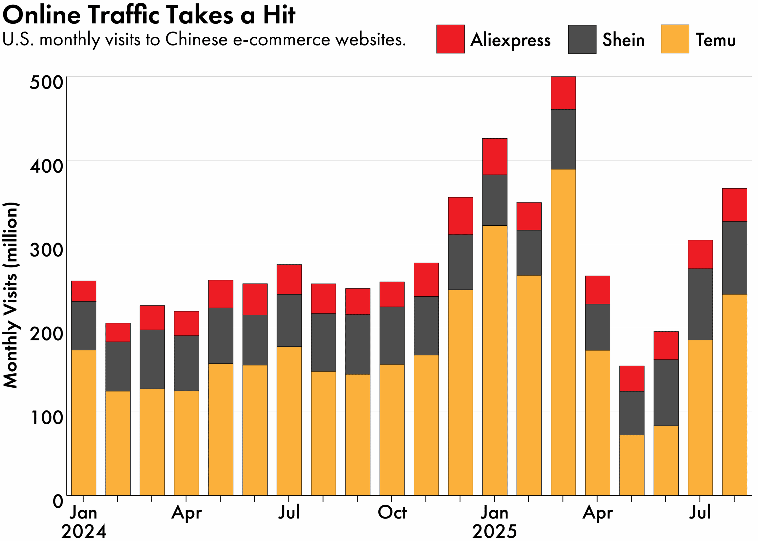 Temu and Shein’s efforts to diversify have also helped them weather the de minimis blow. Temu, for example, has invested heavily in Brazil, where monthly average visits to its website soared from 600,000 in 2023 to more than 85 million this year. The company cranked up ad spending in Brazil by almost half in April, and web traffic from Brazil quickly overtook the U.S. by mid-month, Similarweb data shows. It has also been growing fast in South Korea and Mexico. In addition to diversifying its customer base, Shein has meanwhile expanded its factory network to Brazil and Turkey.